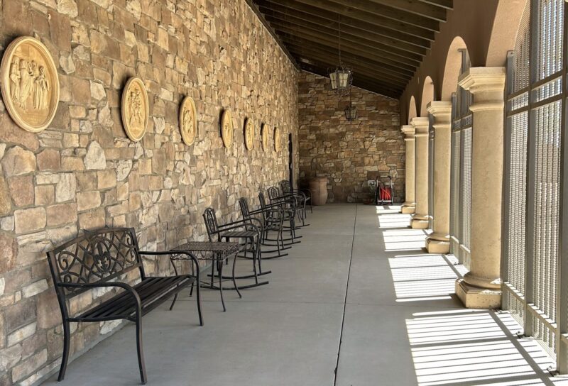 Retreantants are also invited to use the outdoor picnic area that seats approximately 30 people. There is also a portico outside the chapel with benches and chairs that is a lovely place to pray and read.