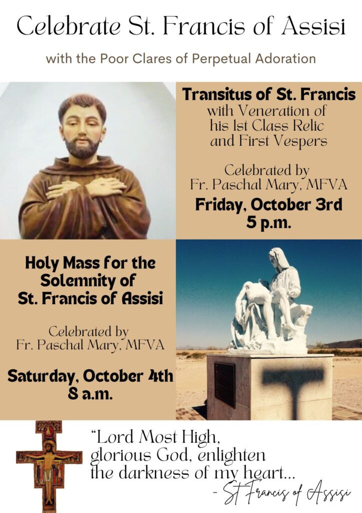 Also, in preparation for his Solemnity, we will be praying a Novena for St. Francis which begins on September 23rd.